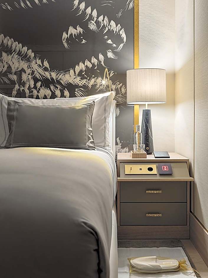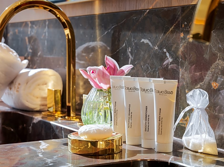 Located on the central façade of the building, this spacious 131 ft² suite comes with 1 double bedroom and a marble bathroom with a rainfall shower and an elegant white bath. There is a 55-inch smart TV with international channels, a media hub with international plug sockets and a Nespresso Coffee Machine.