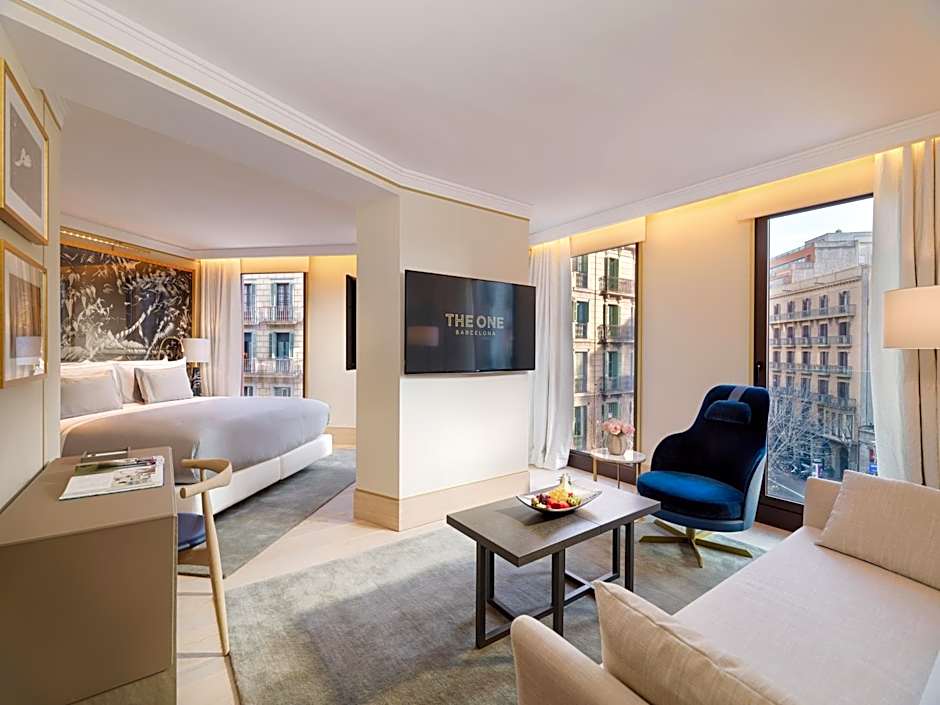 Located on the top floor of the hotel, this suite opens up to the city thanks to its 115 ft² terrace equipped with a Jacuzzi, sun loungers, a shower and with incredible views of Barcelona. Offering 394 ft² (1292 ft2), the Penthouse Suite The One offers numerous areas created for guests to enjoy a variety of areas in private or with company. Its fully equipped kitchen offers extra comfort and privacy. The possibility of connecting to another room makes it a good choice for families who want to maintain their private space.